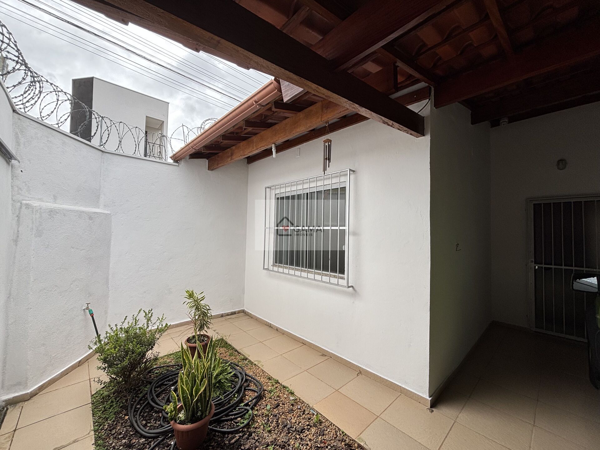 Casa com excelente acabamento, composta por 2 quartos, 1 banheiro social e comodos amplos e bem arejados. Possui piso de primeira qualidade e garagem para três carros, sendo 2 cobertas.